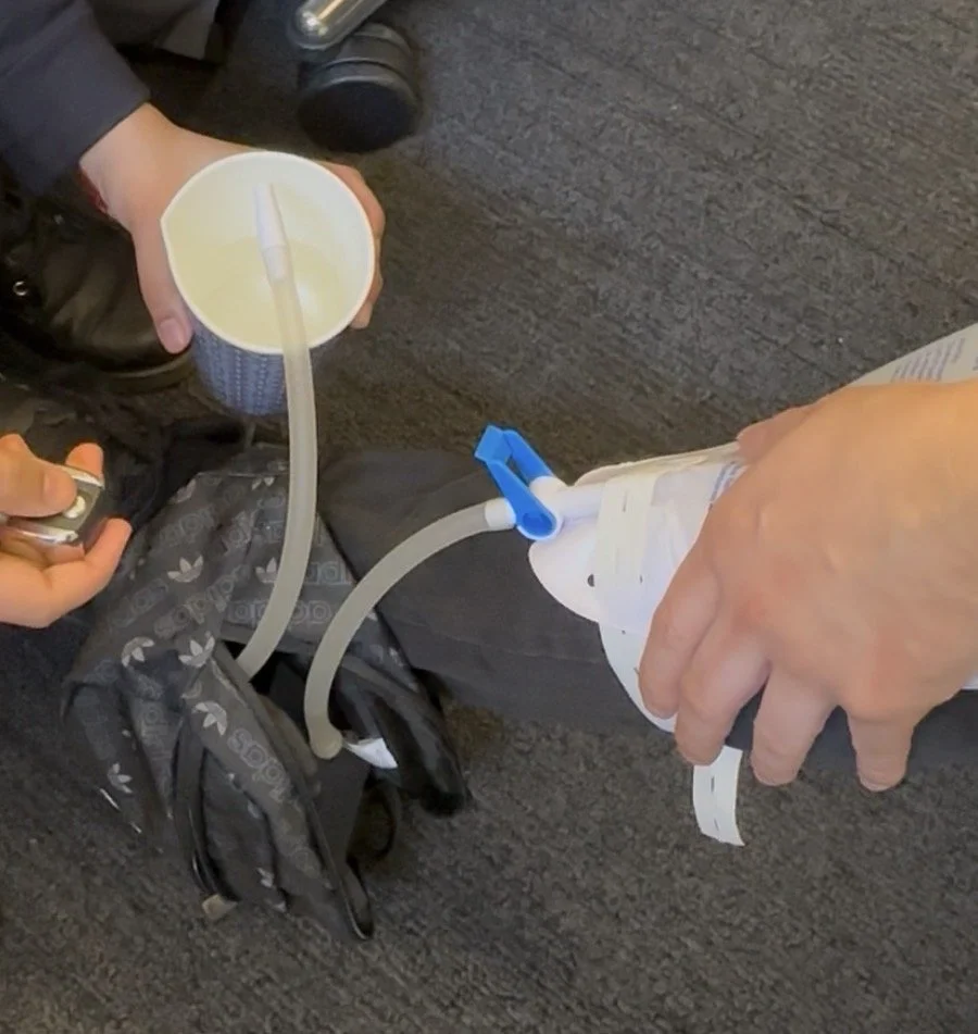 Leg Bag Dispenser being used (spearheaded by Sauda Musharrat)